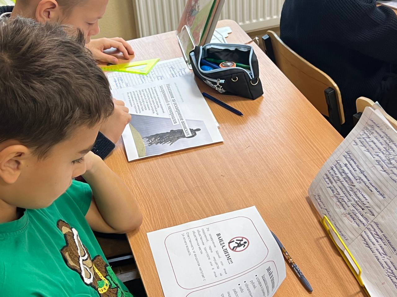 В ходе занятий учащимся напомнили об историческом и патриотическом значении мемориалов, а также проинформировали об уголовной ответственности за их осквернение и причинение ущерба.